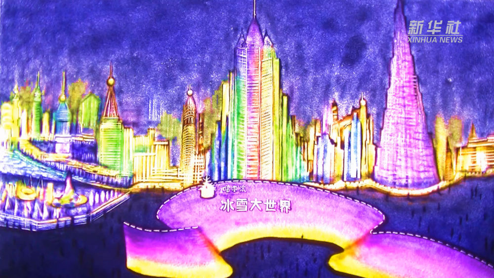 創(chuàng)意沙畫《逐夢(mèng)亞冬會(huì) 相約哈爾濱》用指尖繪就了哈爾濱的冰雪美景以及各類冰雪競技項(xiàng)目,振奮人心。讓我們一起為亞冬會(huì)送上一份祝福,祝愿每一位運(yùn)動(dòng)員都能在賽場上釋放全部能量,讓夢(mèng)想在冰天雪地中綻放最耀眼的光芒。