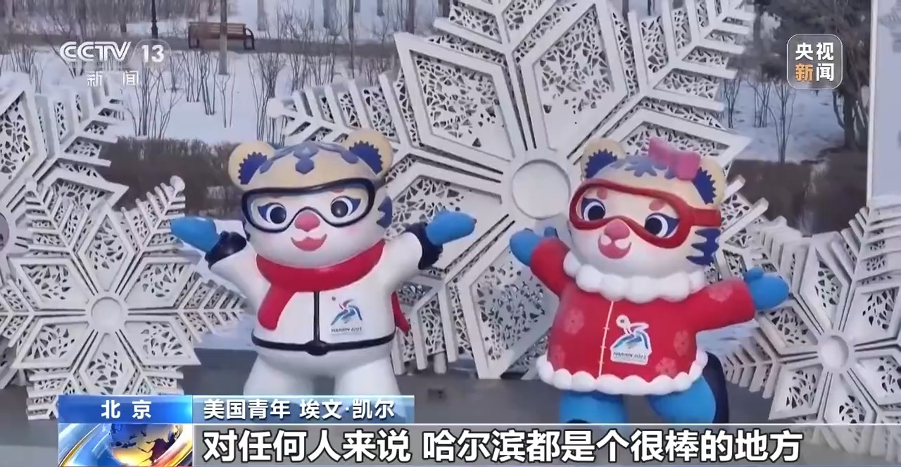 美國青年 埃文·凱爾:對任何人來說,哈爾濱都是個很棒的地方,這里盛行冬季運(yùn)動。我特別喜歡吉祥物——妮妮和濱濱,老虎造型太可愛了。大家對我非常友好,我度過了一段美好時光。人們一定會非常享受今年的亞冬會。