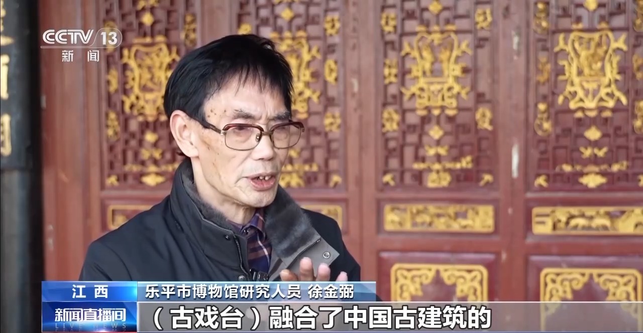 樂(lè)平市博物館研究人員 徐金弼:古戲臺(tái)融合了中國(guó)古建筑的基本重要的元素,雕工精湛,把徽派雕刻藝術(shù)全部集在一起。