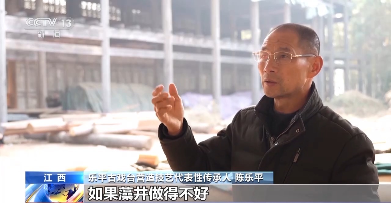 樂(lè)平古戲臺(tái)營(yíng)造技藝非遺傳承人 陳樂(lè)平:古代人做螺旋頂,做得越好的,回音就響亮。如果藻井做得不好,古代沒(méi)有擴(kuò)音器,做得不好回音就回不出來(lái)。