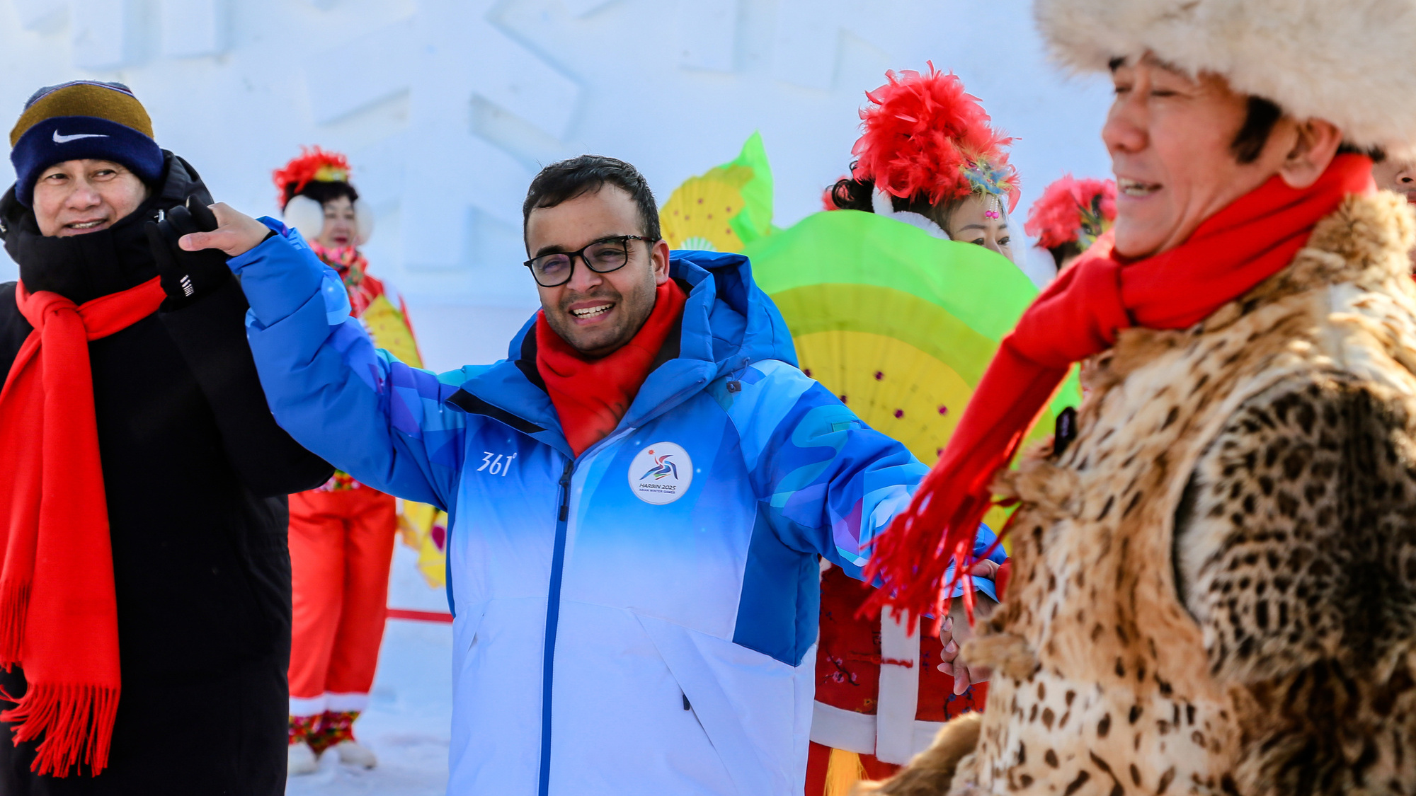 第九屆亞冬會在哈爾濱舉辦期間,一場主題為“當亞冬會遇上非遺年——亞洲多國人士冰城同慶新春”的人文交流活動在哈爾濱舉行?;顒赢斕?,在哈爾濱雪博會中央廣播電視總臺演播室前的廣場上,20多人組成的民間秧歌隊在哈爾濱中央大街形象大使甲繼海的帶領(lǐng)下,為各國來賓激情演繹迎賓秧歌舞。
