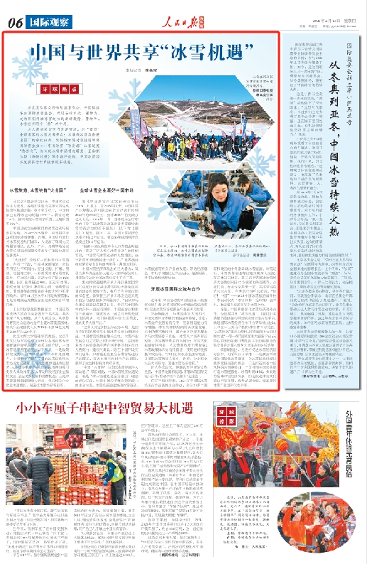 從人潮涌動(dòng)的室內(nèi)外滑雪場(chǎng),到“圈粉”全球游客的冰雪旅游景點(diǎn);從滿載冰雪裝備駛出國(guó)門的中歐班列,到紛紛加碼對(duì)華投資的外國(guó)冰雪企業(yè)……中國(guó)冰雪“冷資源”正在迸發(fā)“熱效應(yīng)”,為全球冰雪市場(chǎng)帶來暖意。正如新加坡《海峽時(shí)報(bào)》等外媒評(píng)論稱,中國(guó)冰雪經(jīng)濟(jì)發(fā)展將為世界提供更多機(jī)遇。