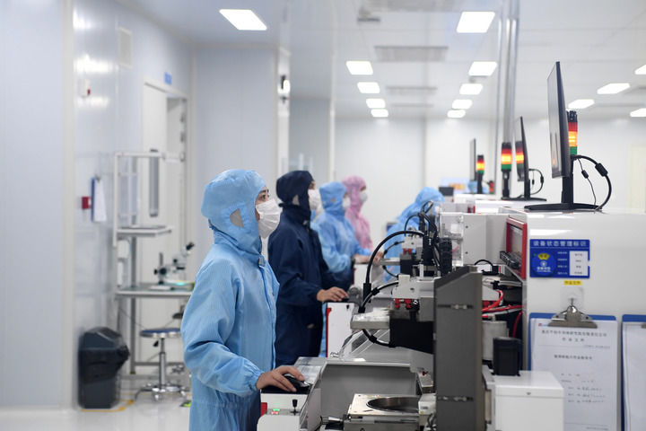 2024年5月10日,技術(shù)人員在重慶平創(chuàng)半導(dǎo)體研究院生產(chǎn)線上忙碌。新華社發(fā)(曾清龍攝)