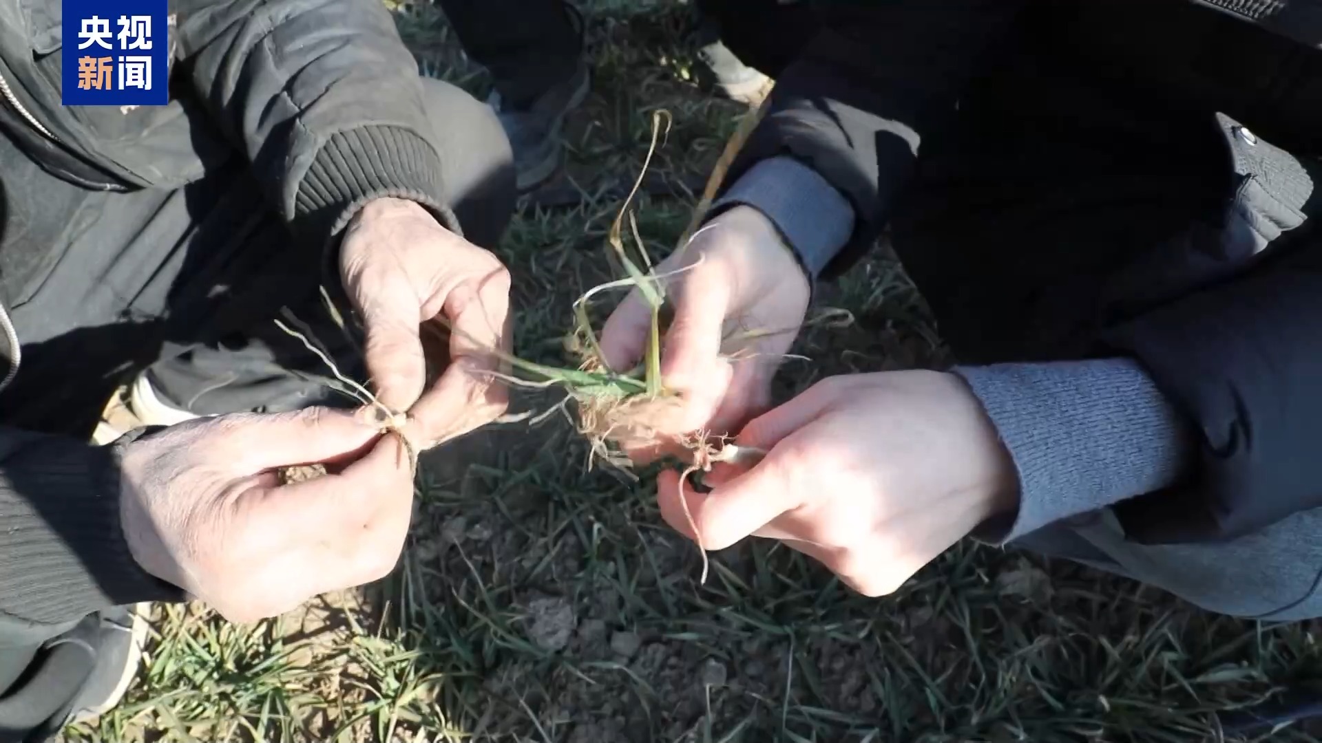 在山東煙臺招遠市一處麥田里,農(nóng)技專家正仔細查看小麥的生長情況。
