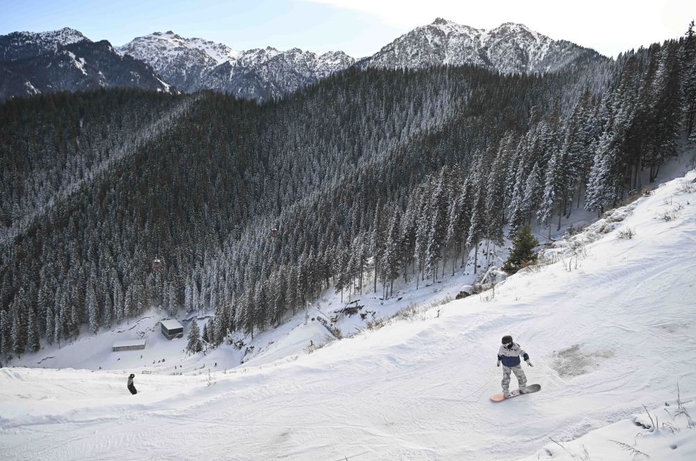 在烏魯木齊縣水西溝鎮(zhèn)平西梁村民宿的天臺(tái)南望,群山間的銀色雪道如絲帶自山頂蜿蜒而下,那是新疆首家5S級(jí)滑雪場(chǎng)——絲綢之路山地度假區(qū),每個(gè)雪季都能迎來(lái)三四十萬(wàn)名雪友。