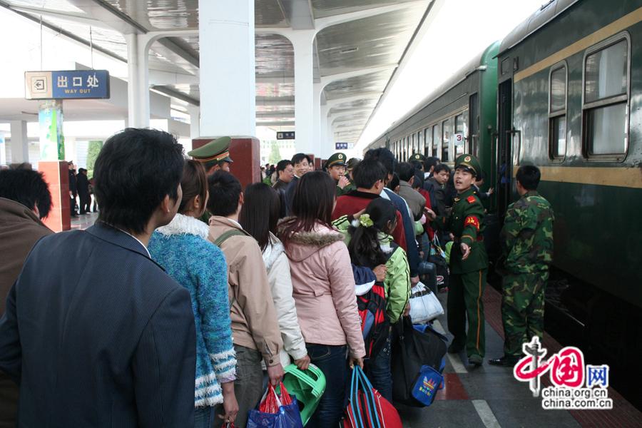 2007春運(yùn),旅客在吉安站排隊(duì)登乘“綠皮車”。中國(guó)網(wǎng)發(fā) 南鐵供圖