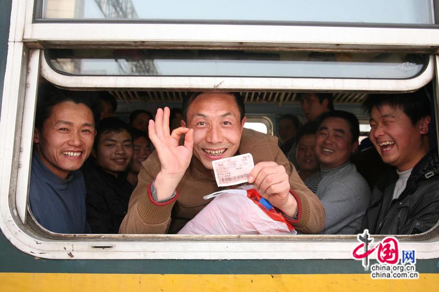 2010年春運(yùn),旅客展示自己的火車票。中國(guó)網(wǎng)發(fā) 南鐵供圖