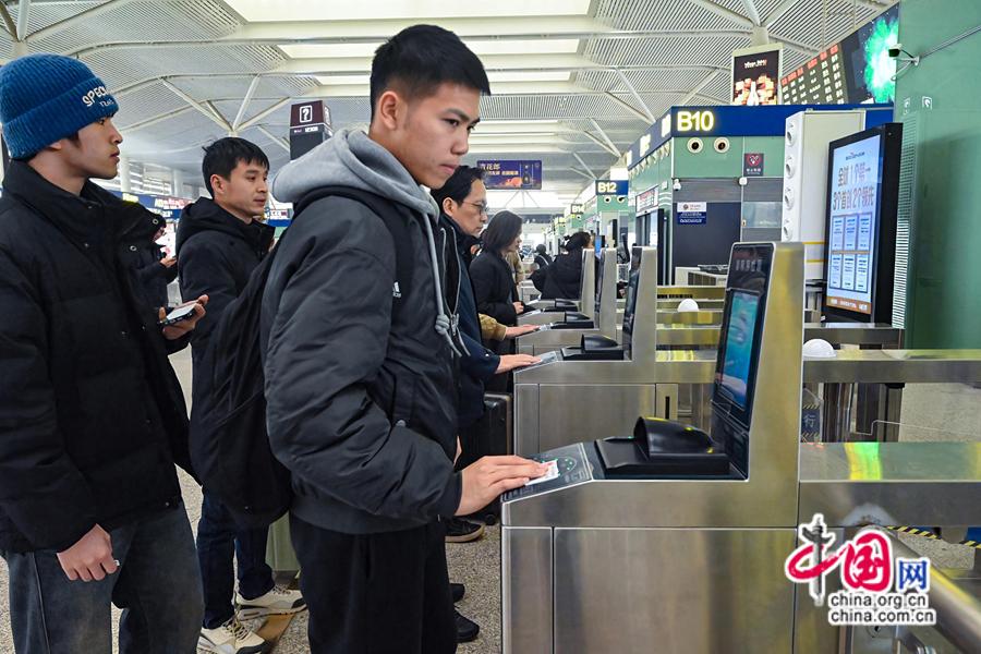 2025年春運(yùn)期間,旅客南昌西站候車廳刷身份證驗(yàn)票。中國(guó)網(wǎng)發(fā) 黃浩/攝
