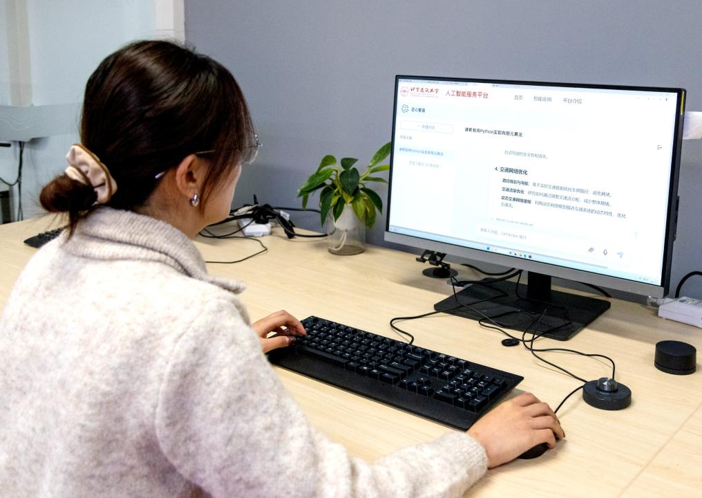 北京建筑大學(xué)學(xué)生體驗(yàn)該校基于DeepSeek打造的“匠心智語(yǔ)”人工智能平臺(tái)。新華社發(fā)