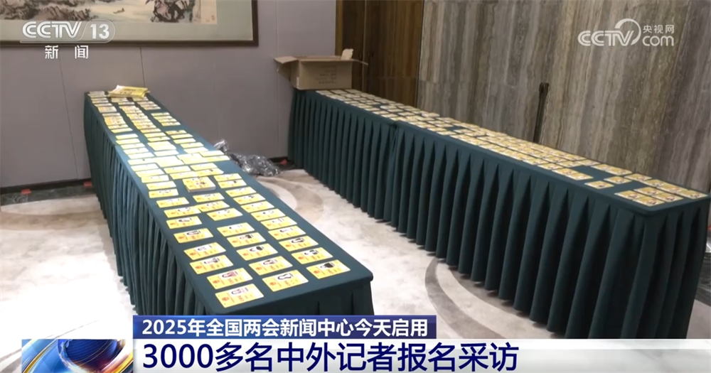 與往年相同,今年全國兩會新聞中心設置了多個功能區(qū),其中,新聞發(fā)布廳和采訪室等已經布置完畢。