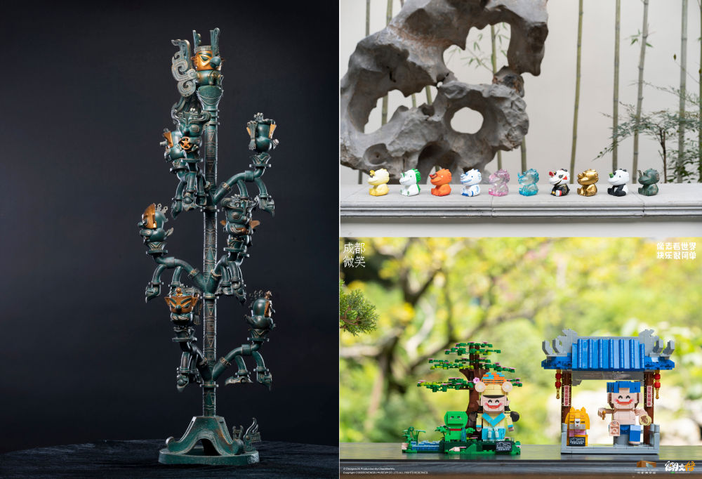 這是曾舟以青銅神樹(shù)、鎮(zhèn)水石犀、說(shuō)唱俑等為原型設(shè)計(jì)的部分文創(chuàng)產(chǎn)品。