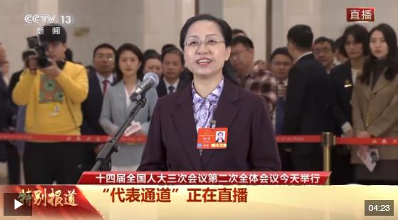 今天(3月8日),十四屆全國人大三次會議第二場“代表通道”在人民大會堂舉行,全國人大代表、石家莊外國語學校黨總支書記裴紅霞接受記者采訪。