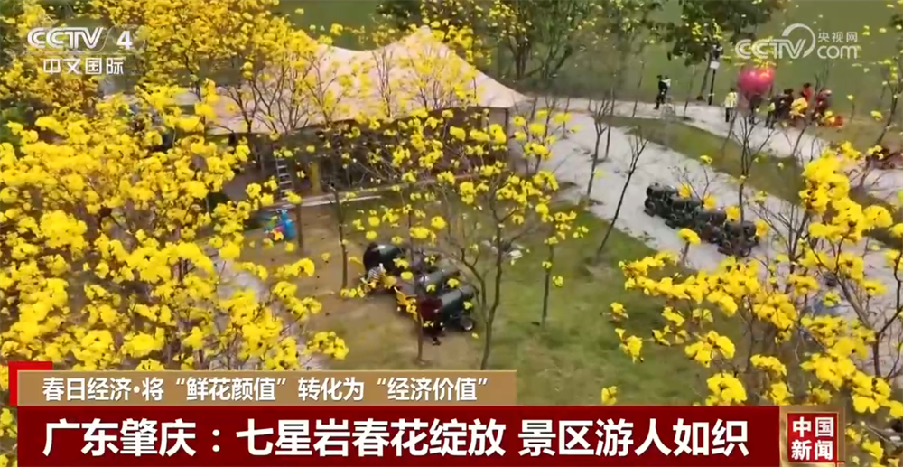 在廣東肇慶七星巖景區(qū),宮粉紫荊、黃花風(fēng)鈴木、櫻花、禾雀花等競相綻放。在禾仙島上的黃花風(fēng)鈴木林正值盛放期,金燦燦的花冠與星湖碧波相映成趣。景區(qū)推出門票優(yōu)惠等舉措,吸引游客來賞花。