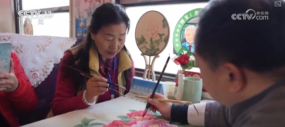 車(chē)行期間,列車(chē)上安排了豐富的活動(dòng),有歌舞表演、知識(shí)競(jìng)猜,還可以體驗(yàn)制作膠東花餑餑。此外,書(shū)畫(huà)創(chuàng)作區(qū)、心理咨詢區(qū)、健康監(jiān)測(cè)區(qū)等,也能讓旅客度過(guò)既充實(shí)又快樂(lè)的“慢時(shí)光”。