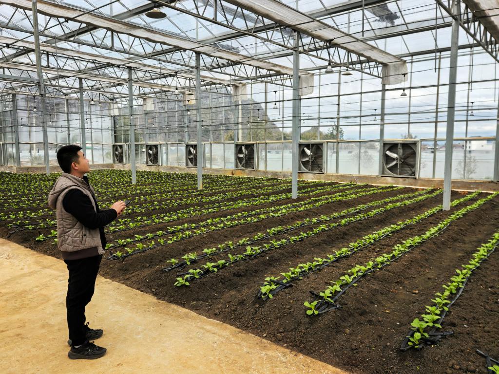 在廣西賀州市平桂區(qū)國家現(xiàn)代農(nóng)業(yè)產(chǎn)業(yè)園品種篩選適應(yīng)棚內(nèi),技術(shù)人員陳愈璋輕觸手機,蔬菜大棚的內(nèi)遮陽網(wǎng)緩緩開啟?!霸绱簳r節(jié)氣溫波動較大,有了物聯(lián)網(wǎng)技術(shù),可以隨時調(diào)整遮陽網(wǎng)開合,效率提高了很多?!标愑罢f。