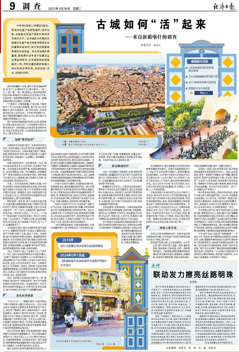 今年的《政府工作報告》提出,推進文化遺產(chǎn)系統(tǒng)性保護,提升文物、非物質(zhì)文化遺產(chǎn)保護利用和考古研究水平。以古城區(qū)為代表的非物質(zhì)文化遺產(chǎn)是中華優(yōu)秀傳統(tǒng)文化的重要組成部分,是中華文明綿延傳承的生動見證。作為古絲綢之路重鎮(zhèn),新疆喀什近年來不僅通過立法等多種形式,對古城加強系統(tǒng)性保護工作;同時注重在保護基礎上加以科學合理利用,建設宜居、宜業(yè)、宜游的古城。