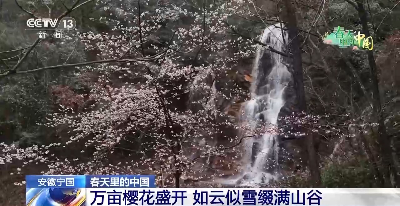 萬(wàn)畝櫻花盛開(kāi) 如云似雪綴滿(mǎn)山谷