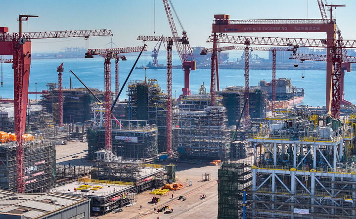 這是3月21日拍攝的天津博邁科海洋工程股份有限公司廠區(qū)一景(無人機照片)。新華社記者 趙子碩 攝