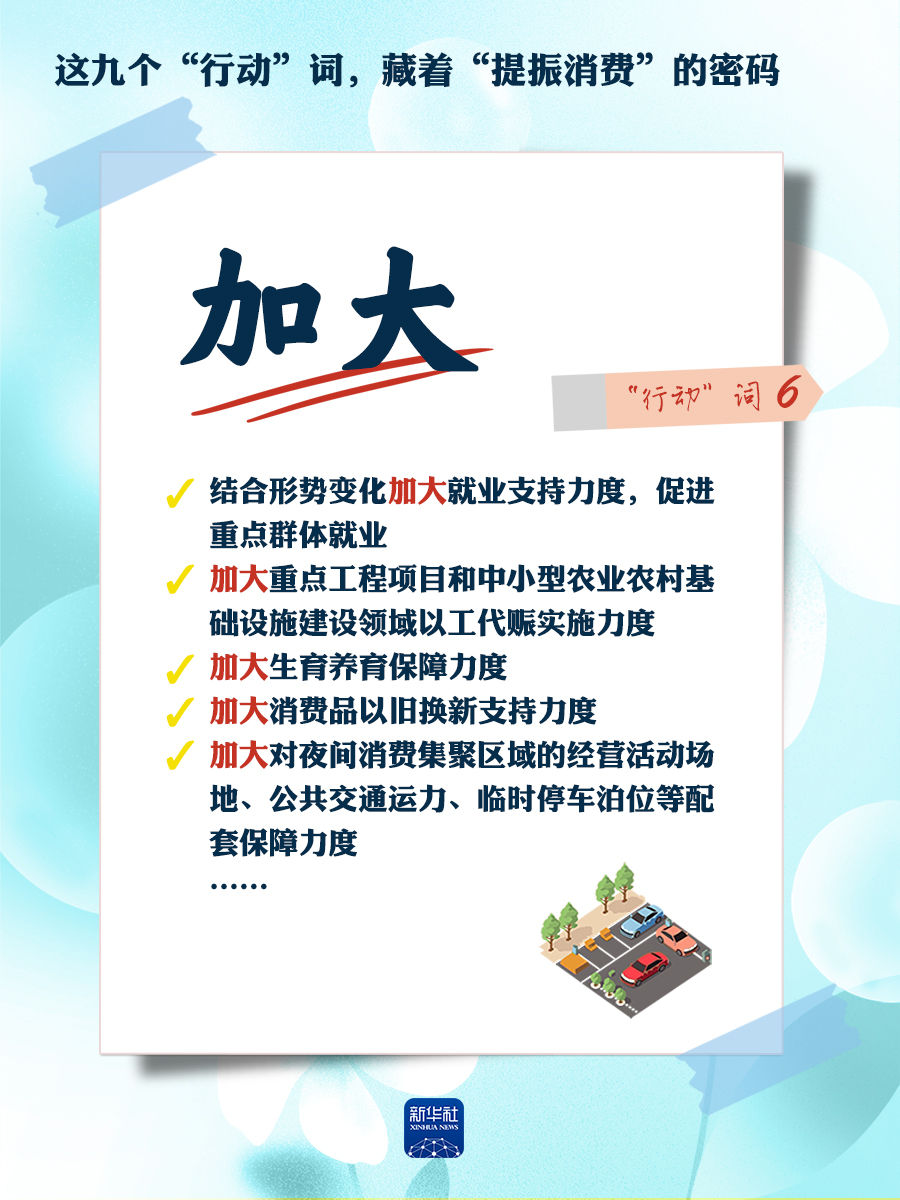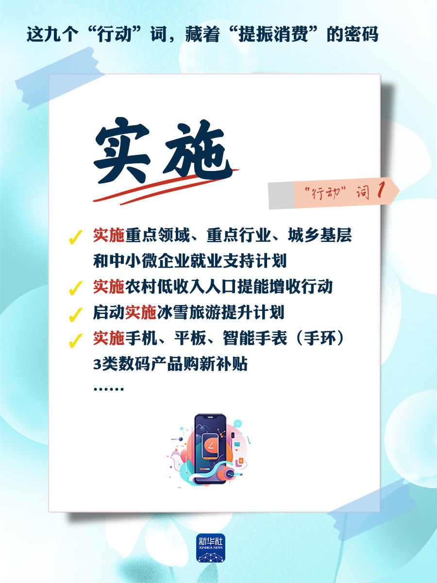 我們梳理出“方案”中使用頻率較高的九個(gè)“行動(dòng)”詞,從這些不同維度的“行動(dòng)”詞中,解讀“專項(xiàng)行動(dòng)”的豐富內(nèi)涵和政策“含金量”,看看哪些是立竿見影、吹糠見米的惠民行動(dòng)?哪些是需要加力擴(kuò)圍、加快補(bǔ)齊的消費(fèi)短板?還有哪些是需要有序推進(jìn)、以點(diǎn)帶面的消費(fèi)“新”點(diǎn)?