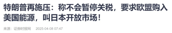 特朗普今天剛要求歐盟,加大購買美國天然氣和石油,更要求日本放開農(nóng)產(chǎn)品、汽車等關(guān)鍵市場。