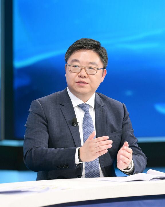 國家發(fā)展改革委民營經(jīng)濟(jì)發(fā)展局副局長劉民在第十五期“中國經(jīng)濟(jì)圓桌會(huì)”錄制現(xiàn)場發(fā)言。新華社記者 李賀 攝