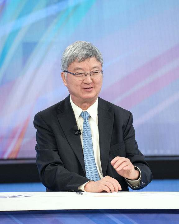 中國國際經(jīng)濟(jì)交流中心資深專家委員朱民在第十五期“中國經(jīng)濟(jì)圓桌會(huì)”錄制現(xiàn)場發(fā)言。新華社記者 李賀 攝