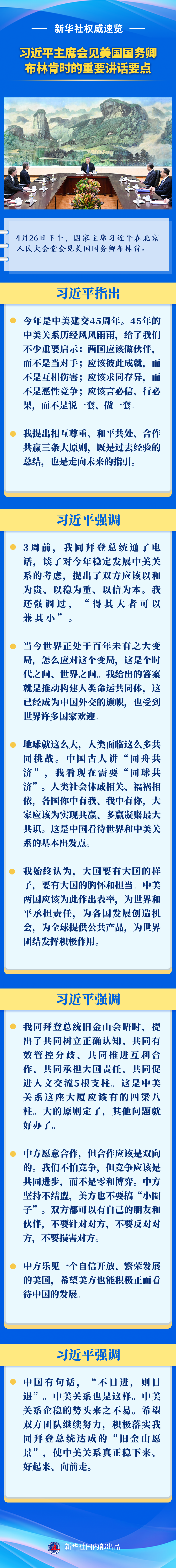 4月26日下午,國家主席習近平在北京人民大會堂會見美國國務(wù)卿布林肯。來看習近平主席的重要講話要點。