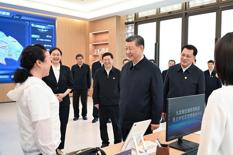 2024年4月22日,習(xí)近平總書記來到重慶九龍坡區(qū)謝家灣街道民主村社區(qū),察看小區(qū)改造和便民服務(wù)情況,聽取提升基層治理效能、為基層減負(fù)情況介紹。