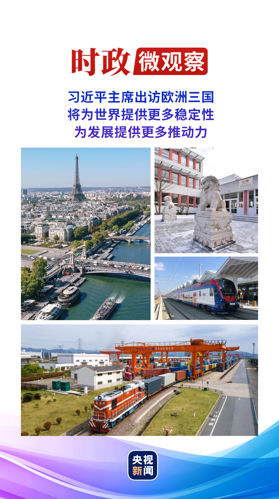 這是習近平主席今年首次出訪,也是習近平主席第三次對法國進行國事訪問、第二次對塞爾維亞進行國事訪問、首次對匈牙利進行國事訪問,對推動中國同法國、塞爾維亞、匈牙利以及中歐關(guān)系整體發(fā)展具有重要意義,也將為世界和平發(fā)展注入新動能。