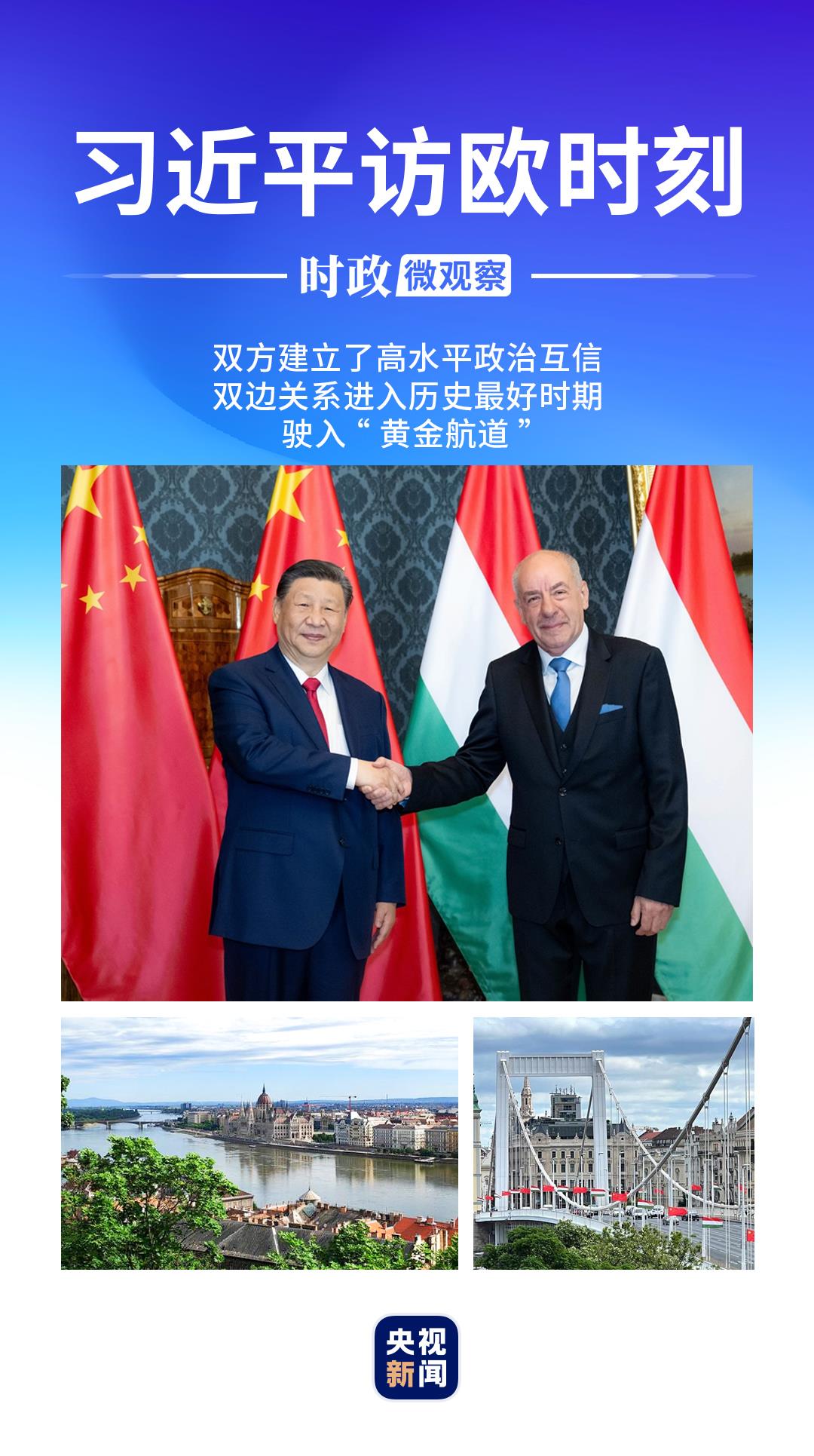 當(dāng)?shù)貢r間5月9日下午,習(xí)近平主席同歐爾班總理宣布,將中匈關(guān)系提升為新時代全天候全面戰(zhàn)略伙伴關(guān)系。共同會見記者時,習(xí)主席再次以“黃金航道”作喻,表示“愿以此為新起點,推動中匈關(guān)系和務(wù)實合作進入黃金航道”。