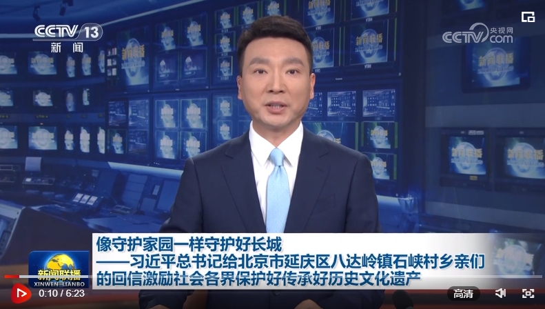 習(xí)近平總書記5月14日給北京市延慶區(qū)八達(dá)嶺鎮(zhèn)石峽村的鄉(xiāng)親們回信,強(qiáng)調(diào),長(zhǎng)城是中華民族的代表性符號(hào)和中華文明的重要象征,凝聚著中華民族自強(qiáng)不息的奮斗精神和眾志成城、堅(jiān)韌不屈的愛國(guó)情懷。勉勵(lì)鄉(xiāng)親們,帶動(dòng)更多人了解長(zhǎng)城、保護(hù)長(zhǎng)城,把祖先留下的這份珍貴財(cái)富世世代代傳下去。習(xí)近平總書記的回信在社會(huì)各界引發(fā)熱烈反響。