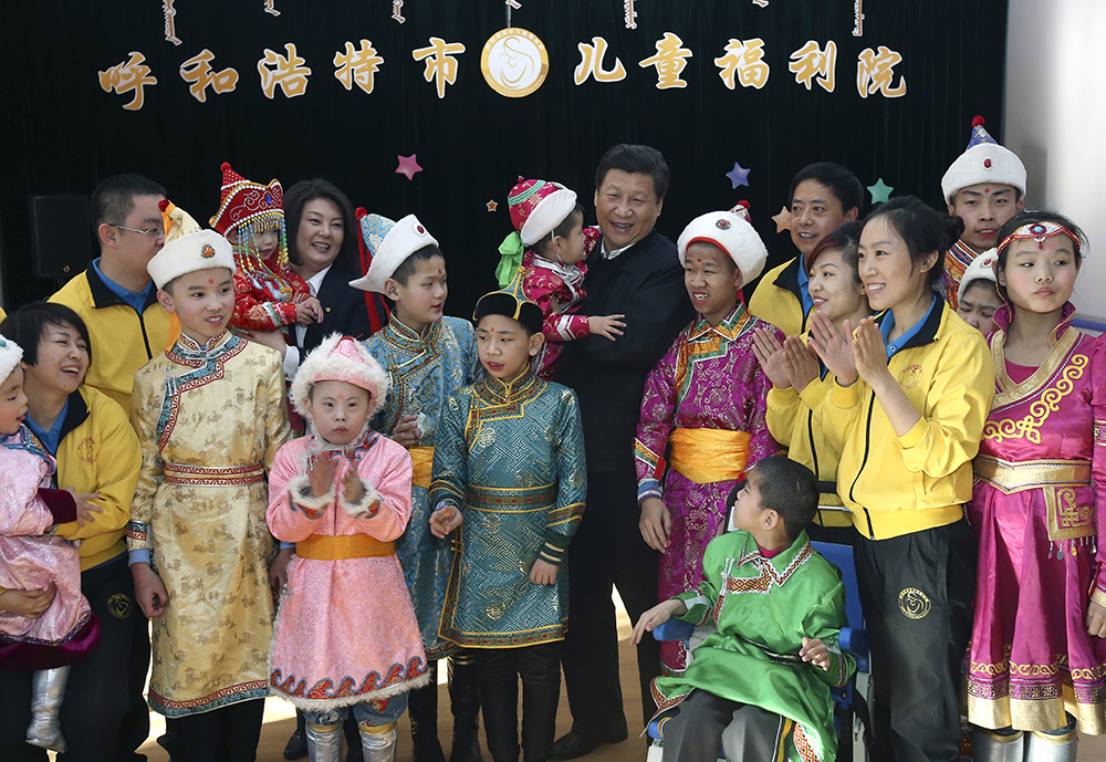 2014年1月28日,習(xí)近平來(lái)到呼和浩特市兒童福利院看望孩子們。新華社記者 龐興雷 攝