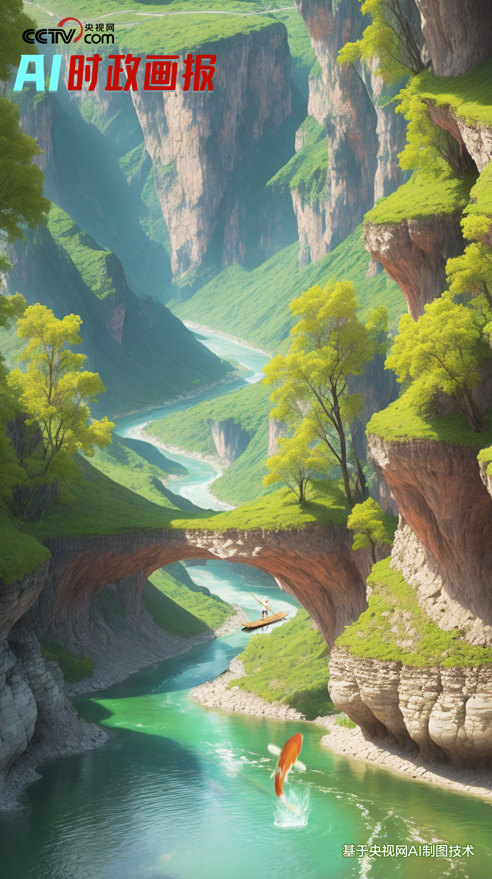 習(xí)近平和大家一起乘坐竹排,行進溪上。行到中游,一條紅鯉魚從水中躍上竹排,不偏不倚,正好落在習(xí)近平腳邊。