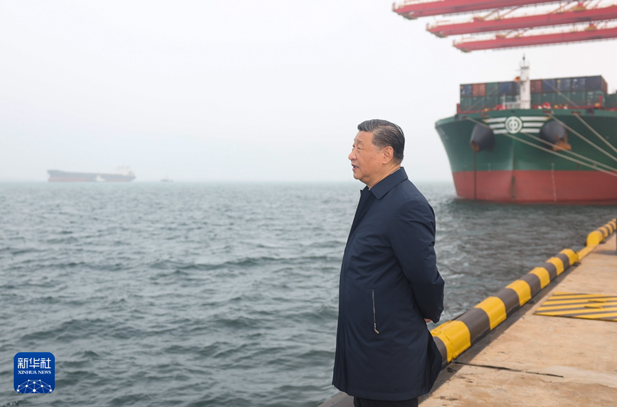 5月22日至24日,中共中央總書(shū)記、國(guó)家主席、中央軍委主席習(xí)近平在山東考察。這是22日下午,習(xí)近平在日照港考察。新華社記者 鞠鵬 攝