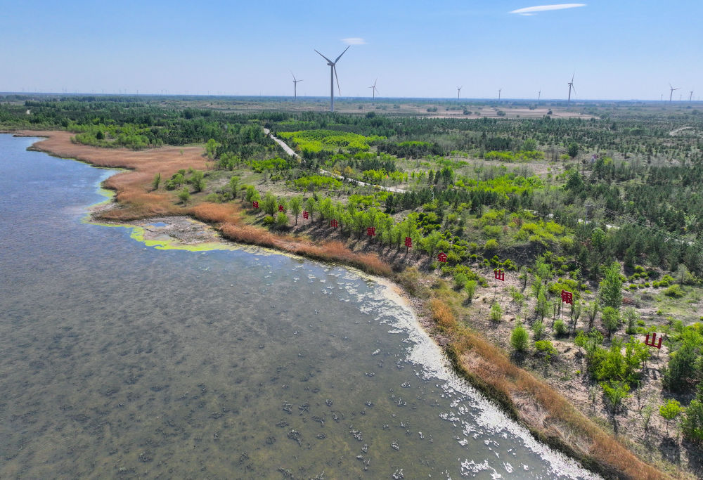 2024年5月15日在內(nèi)蒙古通遼市科爾沁沙地拍攝的“雙百萬(wàn)畝”綜合治理工程努古斯臺(tái)項(xiàng)目區(qū)(無(wú)人機(jī)照片)。