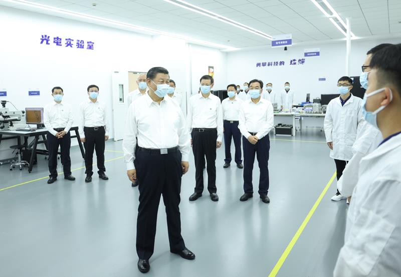 2023年7月5日,習(xí)近平總書記在江蘇蘇州華興源創(chuàng)科技股份有限公司,同企業(yè)年輕研發(fā)人員親切交流。