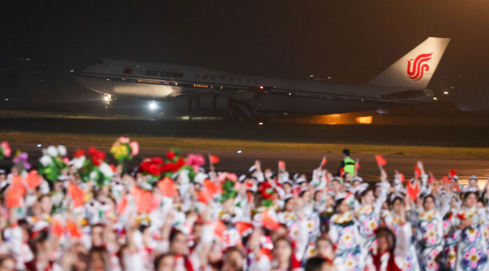 拉赫蒙在機場為習近平舉行盛大隆重的迎賓儀式。1500多名身著民族盛裝的塔吉克斯坦青年表演富有濃郁特色的中塔歌舞,揮舞中塔兩國國旗,表達對中國最尊貴客人的熱烈歡迎。