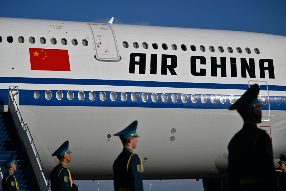 習近平專機起飛后,哈薩克斯坦三架空軍戰(zhàn)機升空護航。
