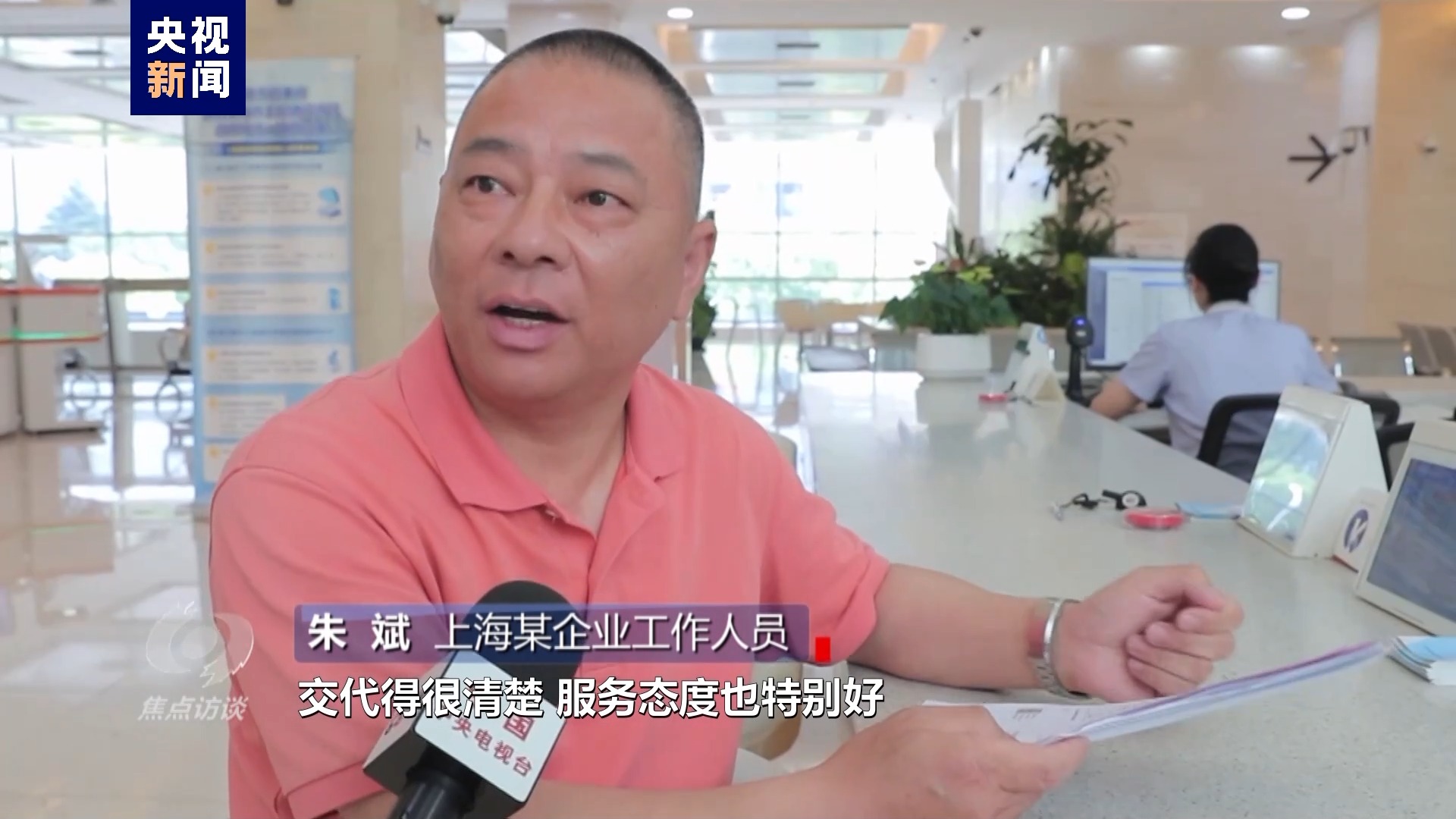 上海某企業(yè)工作人員 朱斌:對我們企業(yè)來辦事、來辦證交代得很清楚,服務態(tài)度也特別好。