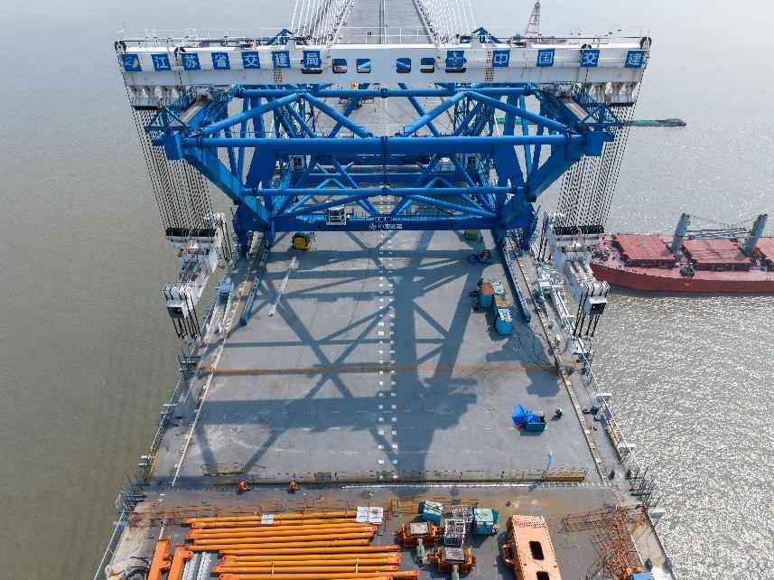 在江蘇,長達(dá)1208米的世界最大跨度斜拉橋——常泰長江大橋全橋貫通。建設(shè)單位在大橋建設(shè)過程中投用了QMD-2000型全球最大噸位橋面吊機(jī),研發(fā)了抗拉強(qiáng)度高達(dá)2100兆帕的斜拉索,打造出國內(nèi)首條鋼桁梁全過程智能生產(chǎn)線……依托5G、大數(shù)據(jù)、物聯(lián)網(wǎng)等信息技術(shù),常泰長江大橋建設(shè)還實(shí)現(xiàn)了對(duì)施工全過程的“可知、可測、可控”。