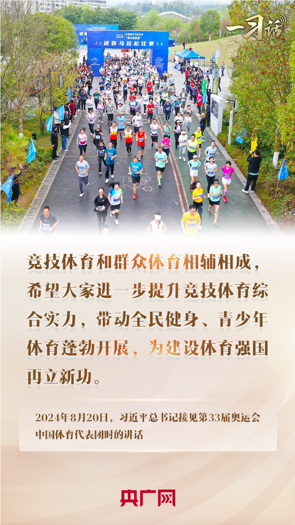 今天,參加各類體育活動正成為我們生活中許多人的一種生活方式。正如前不久奪得首屆奧運大眾馬拉松女子組冠軍的“90后”銀行程序員黃雪梅所說,作為一名業(yè)余選手,好成績的取得與生活區(qū)周邊越來越好的體育鍛煉環(huán)境密不可分。黨的二十屆三中全會提出,要完善全民健身公共服務體系,改革完善競技體育管理體制和運行機制。我們要貫徹落實習近平總書記接見中國體育代表團時的重要講話精神,在進一步提升競技體育綜合實力同時,帶動全民健身、青少年體育蓬勃發(fā)展,大力弘揚中國奧運會健兒在本屆奧運會上展現(xiàn)出的中華體育精神,共同推動體育強國和健康中國的發(fā)展。