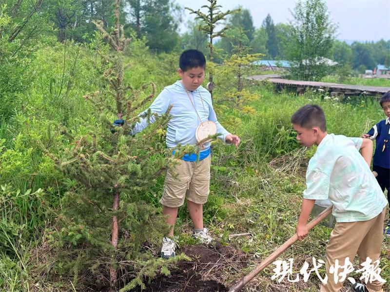 這樣的美麗風(fēng)景讓第一次來(lái)到大草原的周云昊很興奮。“我們從當(dāng)?shù)亓私獾?,這是一代又一代人努力的結(jié)果,讓我們也深切感受到生態(tài)保護(hù)的重要性?!毖袑W(xué)途中,周云昊和小伙伴們還專(zhuān)門(mén)在當(dāng)?shù)亓謭?chǎng)種下一棵樹(shù)?!跋M芙】甸L(zhǎng)大,成為守護(hù)綠色草原的小衛(wèi)士?!?/p>