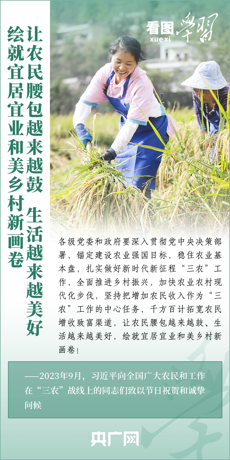 民族要復(fù)興,鄉(xiāng)村必振興。黨的十八大以來(lái),每到各地考察調(diào)研,習(xí)近平總書(shū)記總會(huì)去農(nóng)村看一看,走進(jìn)田間地頭,和農(nóng)民拉拉家常。總書(shū)記強(qiáng)調(diào),“建設(shè)宜居宜業(yè)和美鄉(xiāng)村是農(nóng)業(yè)強(qiáng)國(guó)的應(yīng)有之義”,“要讓農(nóng)民腰包越來(lái)越鼓、生活越來(lái)越美好”。