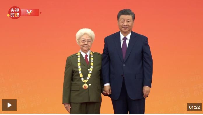 中華人民共和國國家勛章和國家榮譽稱號頒授儀式9月29日上午10時在人民大會堂隆重舉行。中共中央總書記、國家主席、中央軍委主席習近平向“人民藝術(shù)家”國家榮譽稱號獲得者田華頒授獎?wù)隆?/p>