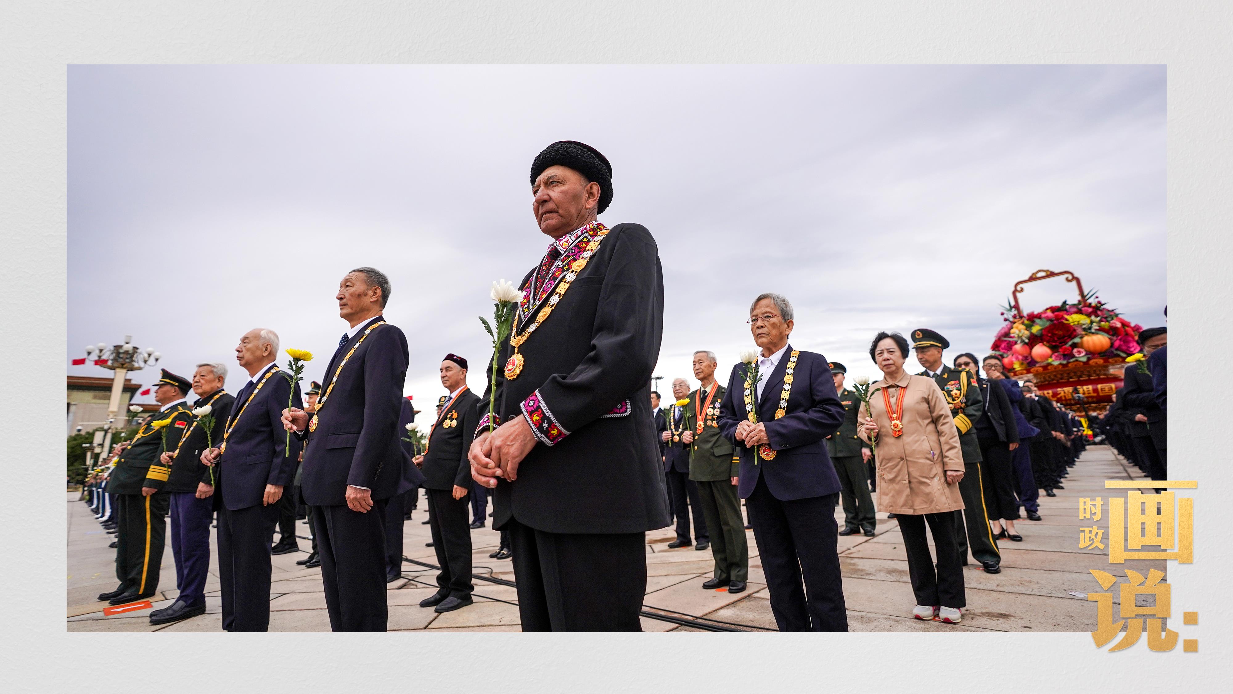 少年兒童和各界代表依次走到紀(jì)念碑前,獻(xiàn)上手中鮮花并瞻仰紀(jì)念碑。
