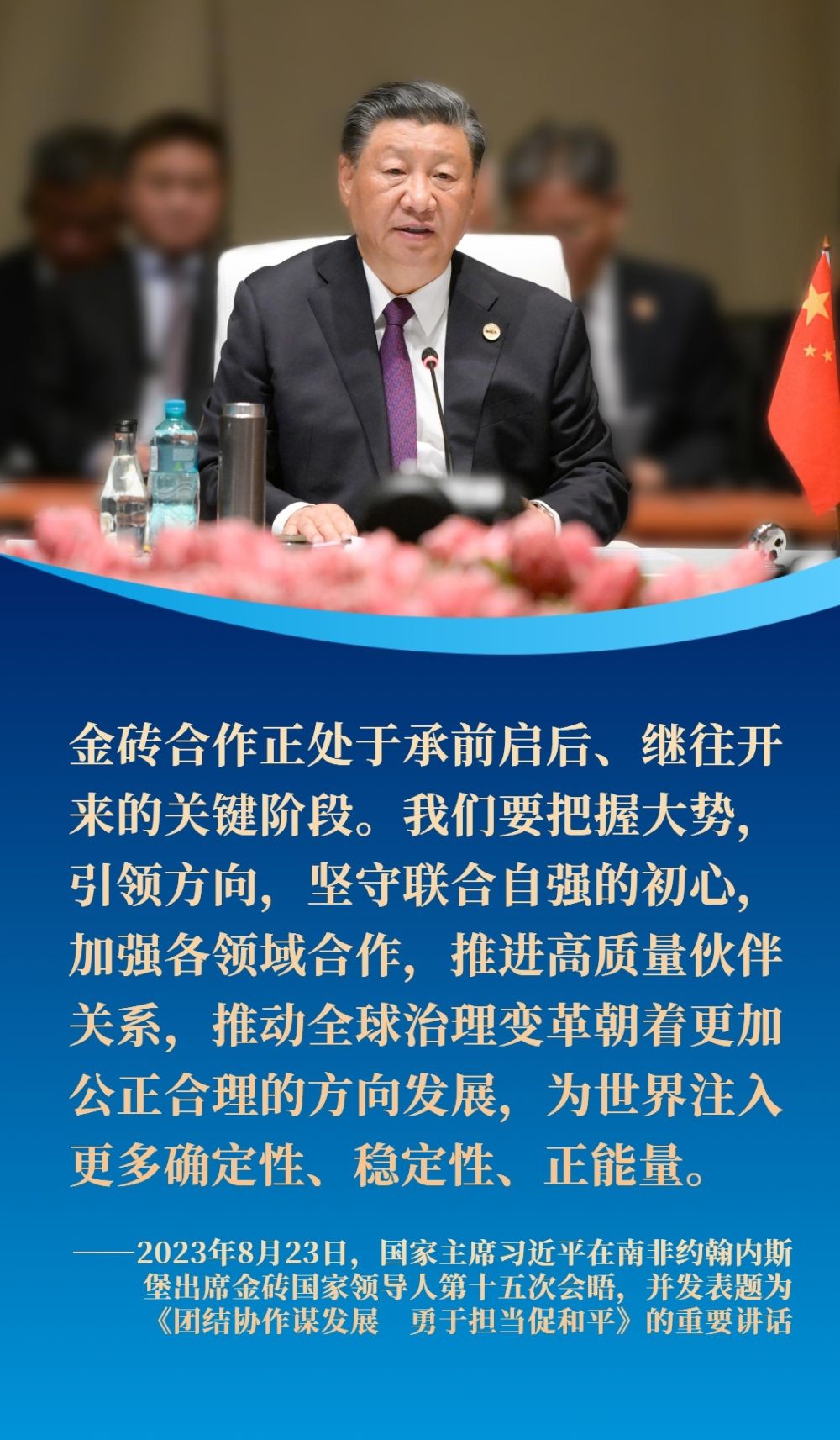 跨越山海,相互成就。中國(guó)將同金磚伙伴一道,秉持開放包容、合作共贏精神,堅(jiān)守團(tuán)結(jié)自強(qiáng)初心,繼續(xù)書寫攜手發(fā)展的精彩故事。