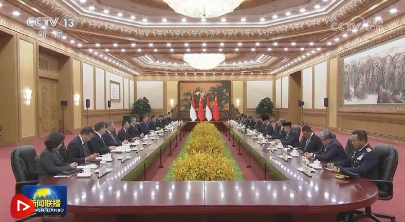 11月9日下午,國家主席習近平在北京人民大會堂同來華進行國事訪問的印度尼西亞總統(tǒng)普拉博沃舉行會談。