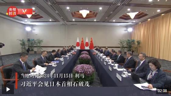 當(dāng)?shù)貢r間11月15日,國家主席習(xí)近平在利馬出席亞太經(jīng)合組織領(lǐng)導(dǎo)人非正式會議期間會見日本首相石破茂。