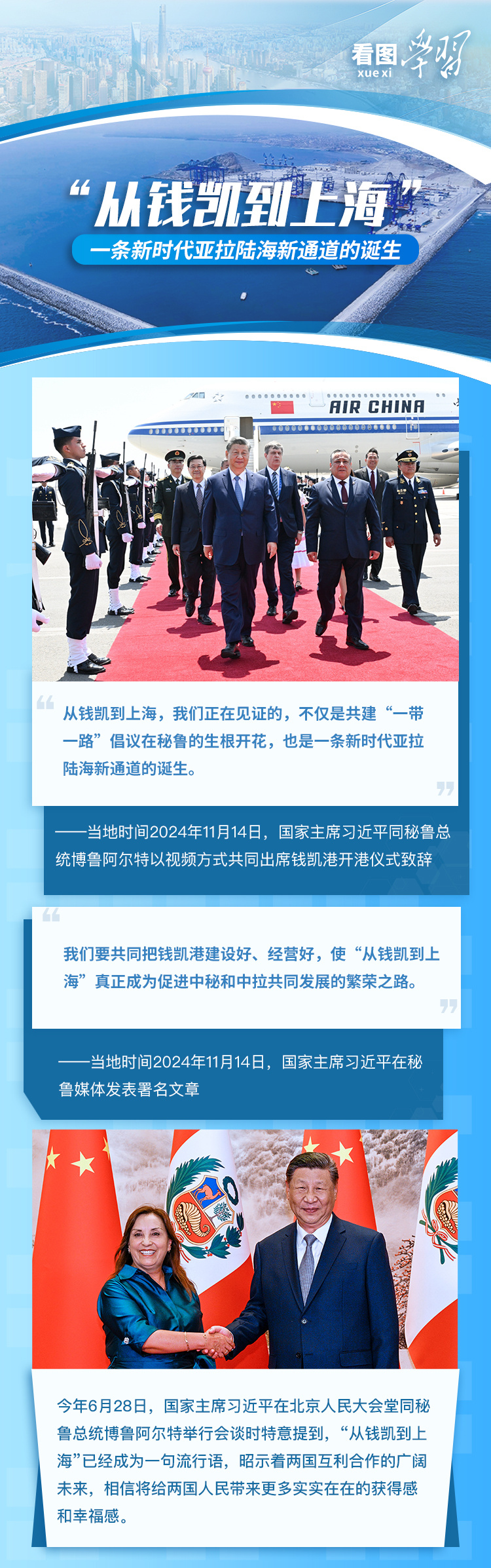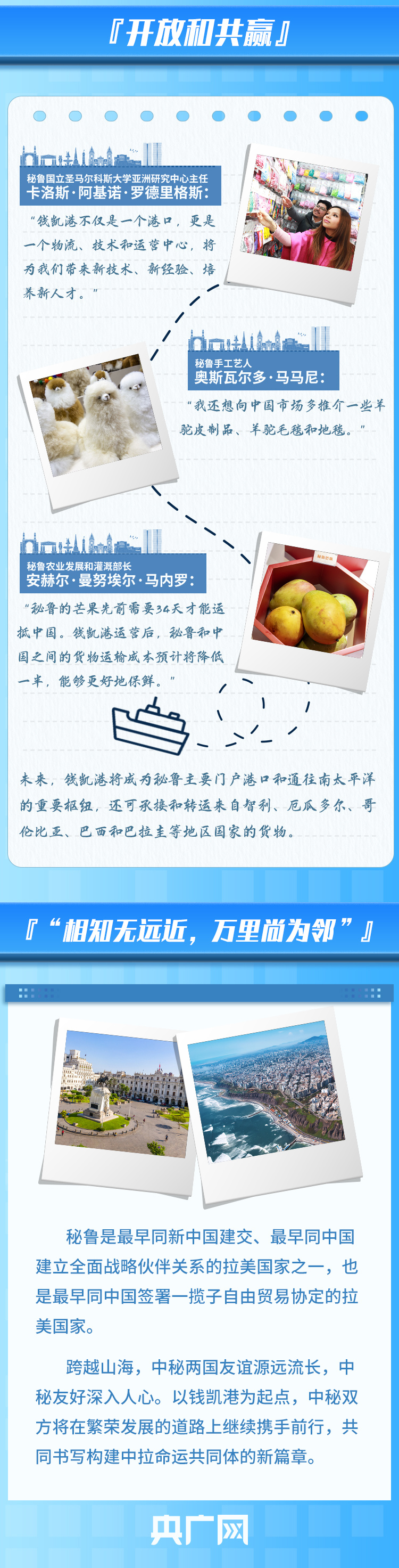 錢凱港位于秘魯首都利馬以北80公里,是中秘共建“一帶一路”重點(diǎn)項(xiàng)目。開港后,中秘間單程海運(yùn)時(shí)間將縮短至23天,節(jié)約20%以上的物流成本,每年將為秘魯創(chuàng)造逾8000個(gè)直接就業(yè)機(jī)會(huì)。