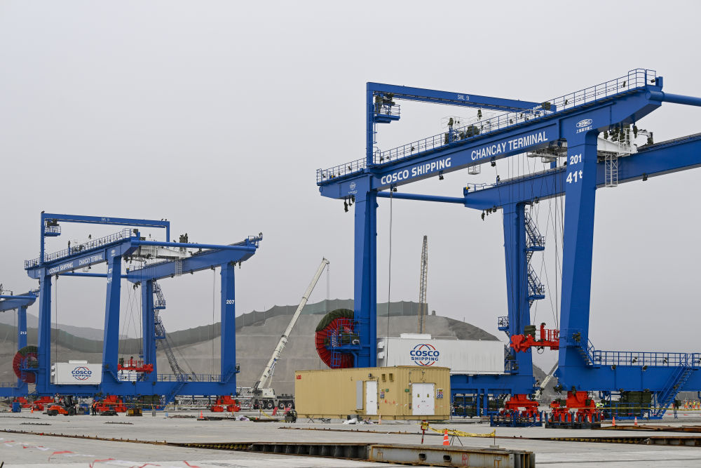 這是2024年6月21日拍攝的秘魯錢凱港碼頭操作區(qū)建設現(xiàn)場。